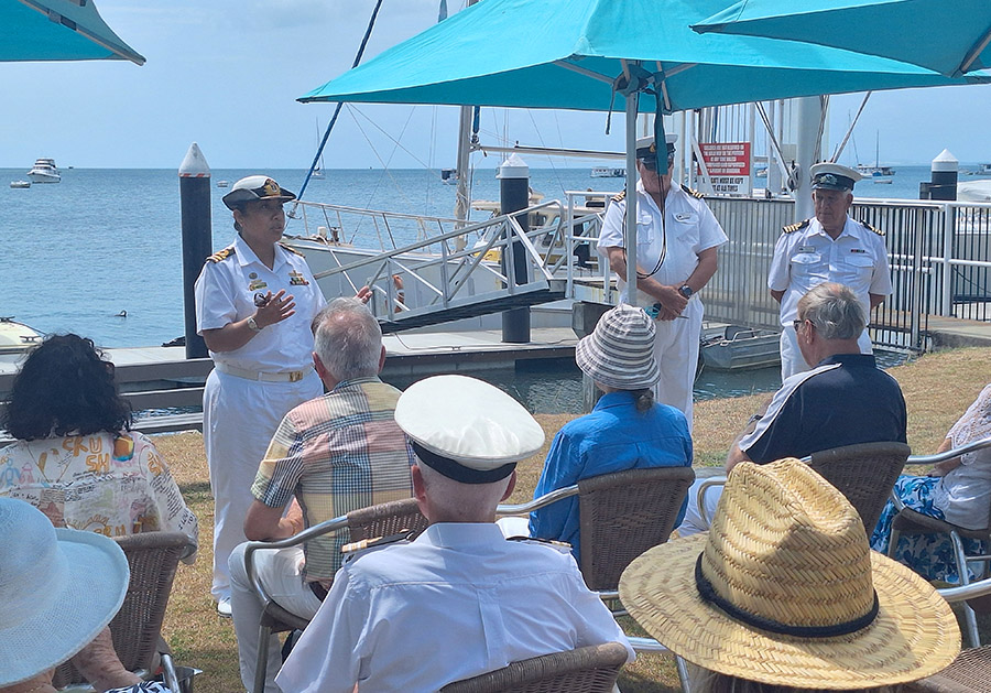 Before the invited audience, Commander Rose spoke eloquently of the historic origins of our Club in the Royal Australian Navy Naval Reserve and the service of our “little ships” and their skippers in helping defend Moreton Bay – indeed, the Queensland coast and beyond! – during the Second World War, and the enduring legacy of that heritage today.